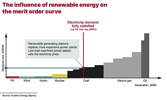 So this mechanism not only ensures that there are sufficient power stations on the market to cover electricity needs in full; it also means that particularly cost-effective electricity producers get the nod before others. And this is especially important from a medium-to-long-term point of view: it gives power station operators a major incentive to cut costs and to invest in renewable generating facilities, because electricity is certain to be called off from installations like these thanks to the reduction in their marginal costs.