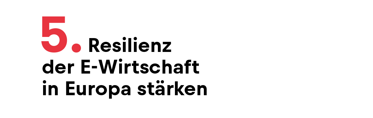 Risikoarme LieferkettenDie Schlüsselinfrastruktur in Europa zu halten bzw. sie dorthin wieder zurückzuholen muss mit höchster Priorität vorangetrieben werden. Der grüne Industrieplan der EU muss sicherstellen, dass die Lieferketten für die E-Wirtschaft risikoarm sind und die Fertigung entlang neuralgischer Punkte wieder in die EU verlagert wird. Die Einleitung einer Antidumping-und/oder Antisubventionsuntersuchung und das Verhängen von Zöllen auf die Einfuhren einzelner Produkte kann sich dagegen nachteilig auf die gesamte europäische Wertschöpfungskette auswirken.